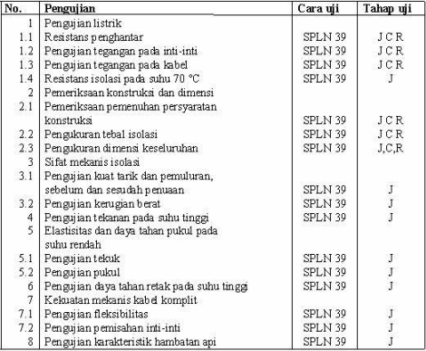Pengujian ini bila telah dilakukan tidak perlu diulang, kecuali bila ada perubahan bahan baku atau konstruksi kabel yang kemungkinan dapat |